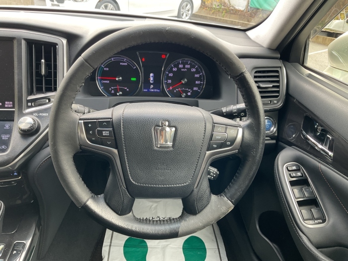 上質なインテリア: シートの質感や細部のステッチまで、日本の職人技が息づいています。ドアを閉めた瞬間の『ガチッ』という密閉感、これぞクラウンです。」