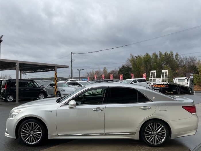 「平成25年式ということで、価格もこなれてきましたが、そのオーラは現行車にも引けを取りません。『燃費は譲れない、でも走りの質感も、周囲からの視線も妥協したくない。』 そんな欲張りな願いをすべて叶えてくれるのが、この210系アスリートSなんです。