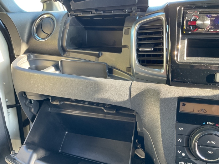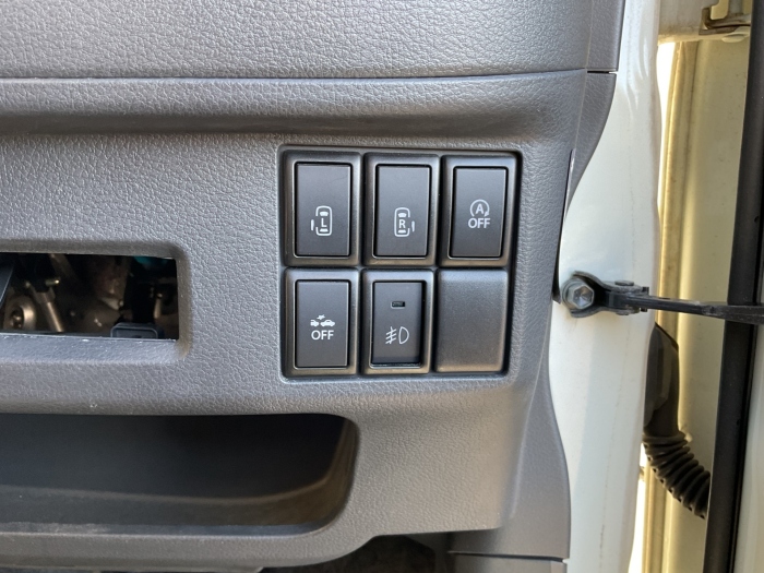 社外AM/FM/CDプレーヤー・両側パワースライドドア・左右フロントシートヒーター・HIDオートライト・衝突軽減ブレーキ・リアロールサンシェイド・ハーフレザーシート・ベンチシート・スマートキー