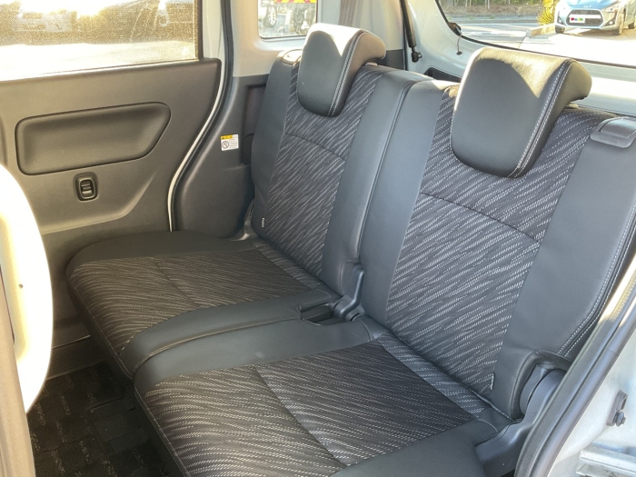 室内に目を向けると、スペーシアならではの広々空間!天井が高く、足元もゆったりしているので、大人が乗っても圧迫感なし。さらにスライドドア付きなので、狭い駐車場やお子様の乗り降りもラクラクです。