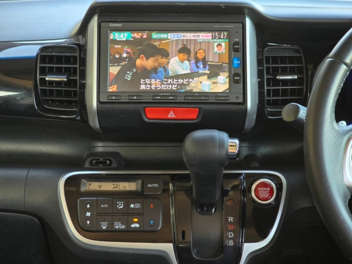 純正ナビ・フルセグTV・DVD再生・Bluetoothオーディオ・両側パワースライドドア・ハーフレザーシート・左右フロントシートヒーター・シートバックテーブル・ETC・バックカメラ・パドルシフト・ステリモ・走行中不可