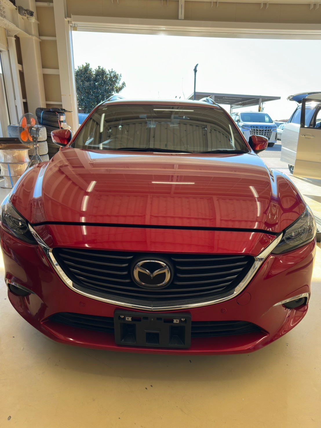 今日は冒頭でお話に出ていた赤いフェラーリのように綺麗な赤いマツダアテンザワゴンの整備をご紹介していきます🚙