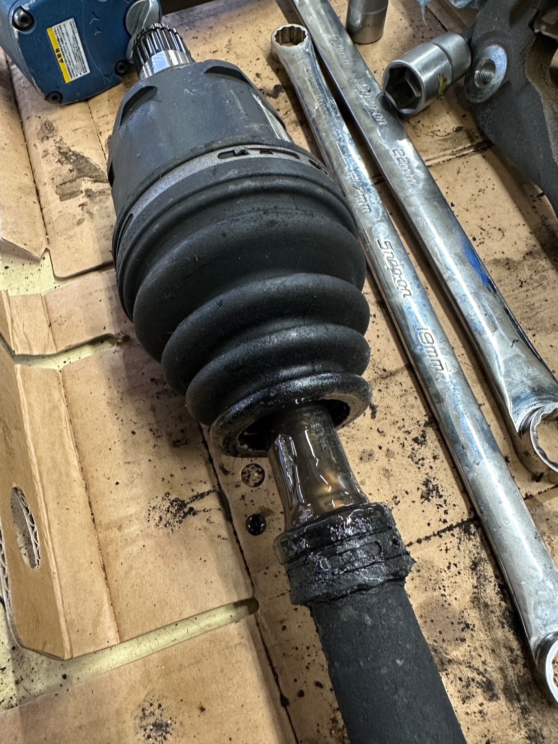 このヴェルファイアはドライブシャフトのインナーブーツが破れていたので交換していました💦