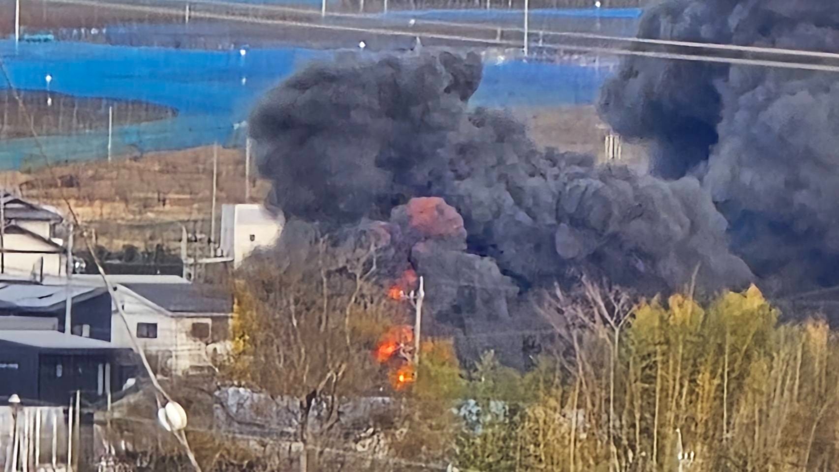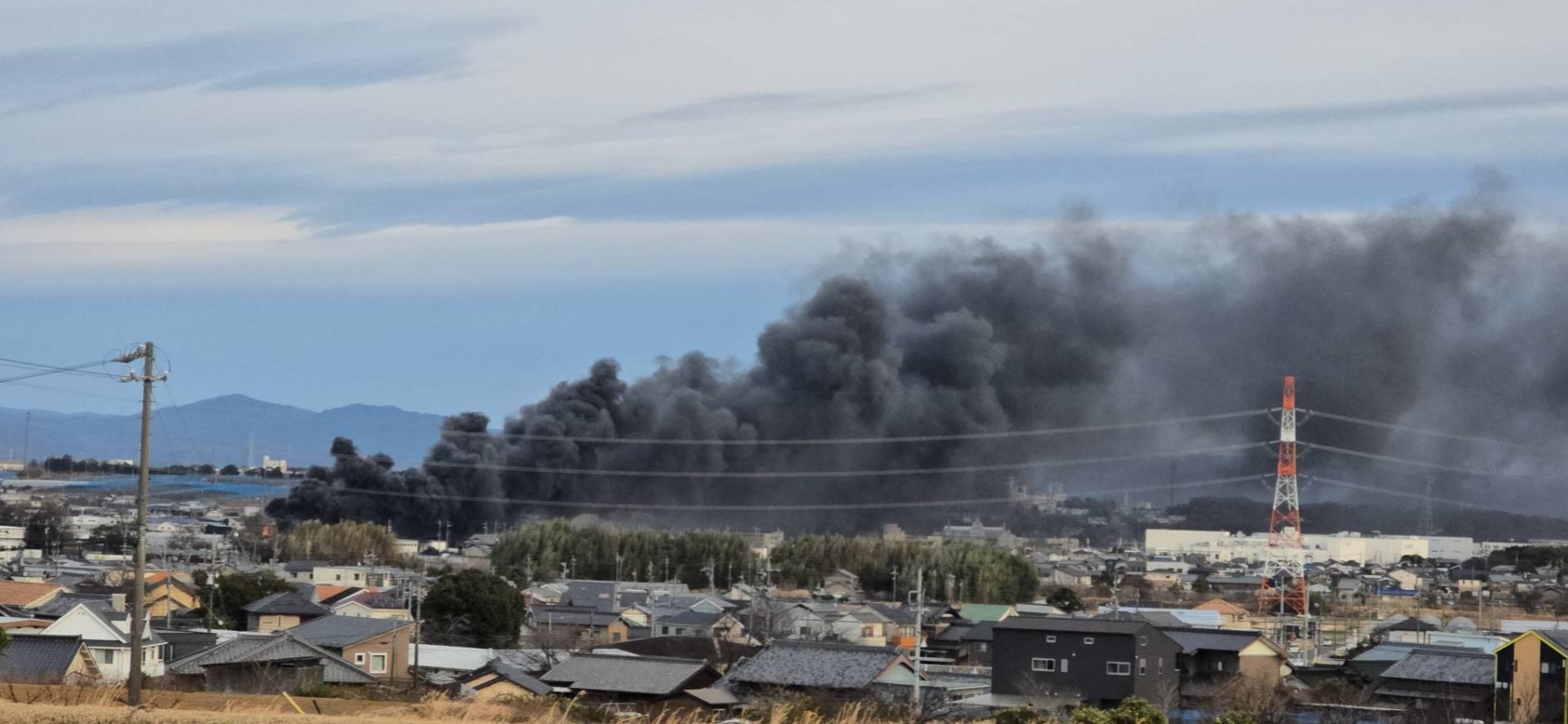 異常なほどの黒煙が遠くに見えるではありませんか!