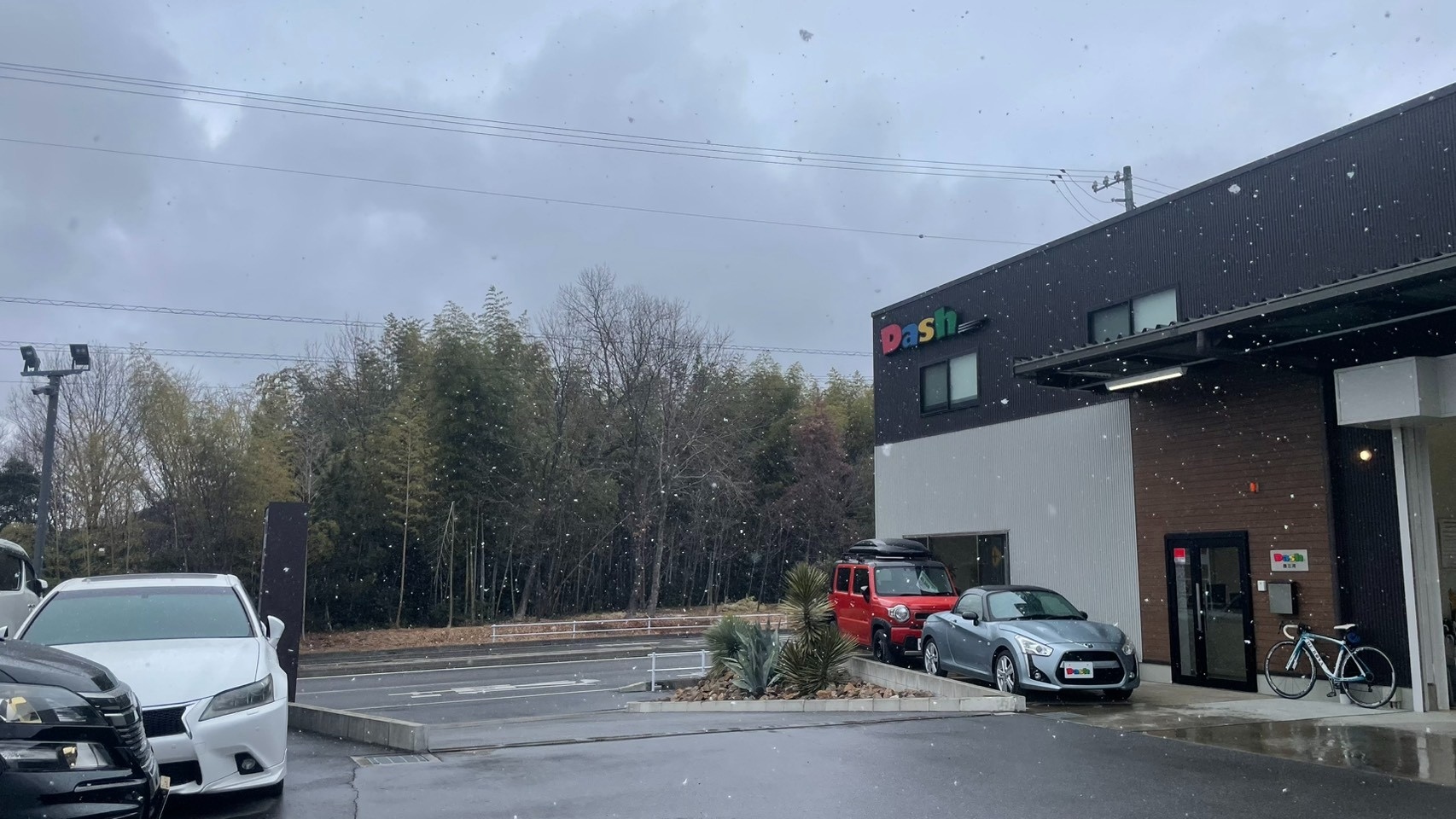 こちらは朝一番の西三河店の状況ですが、道路に雪こそ積もってはいないものの写真にも映り込んでくるくらい主張の激しい雪です。