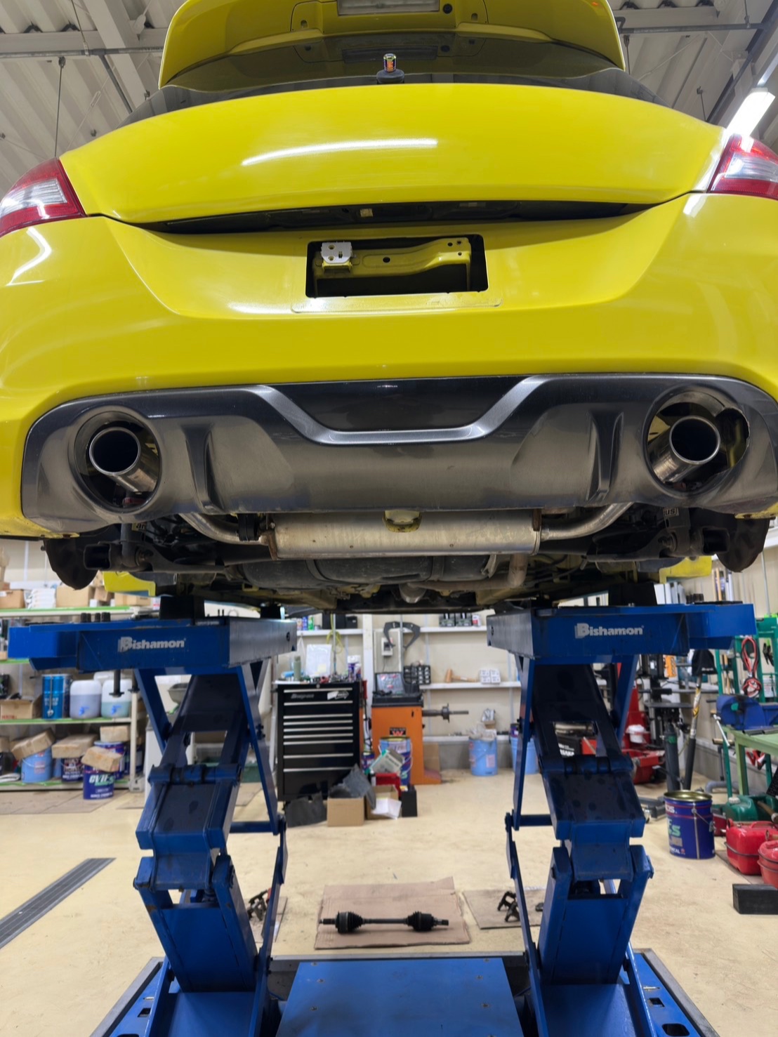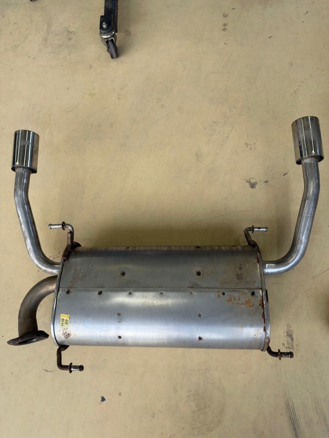 社外のマフラーが付いていましたが、音量が車検に通らない物だった為交換です👍