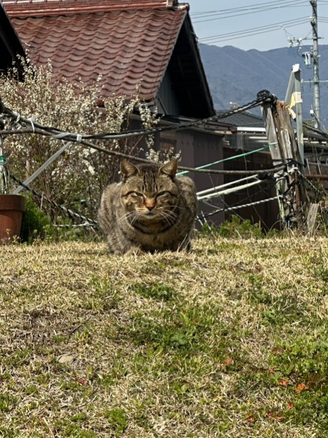 野良猫(毛並み艶々)と遊びながら